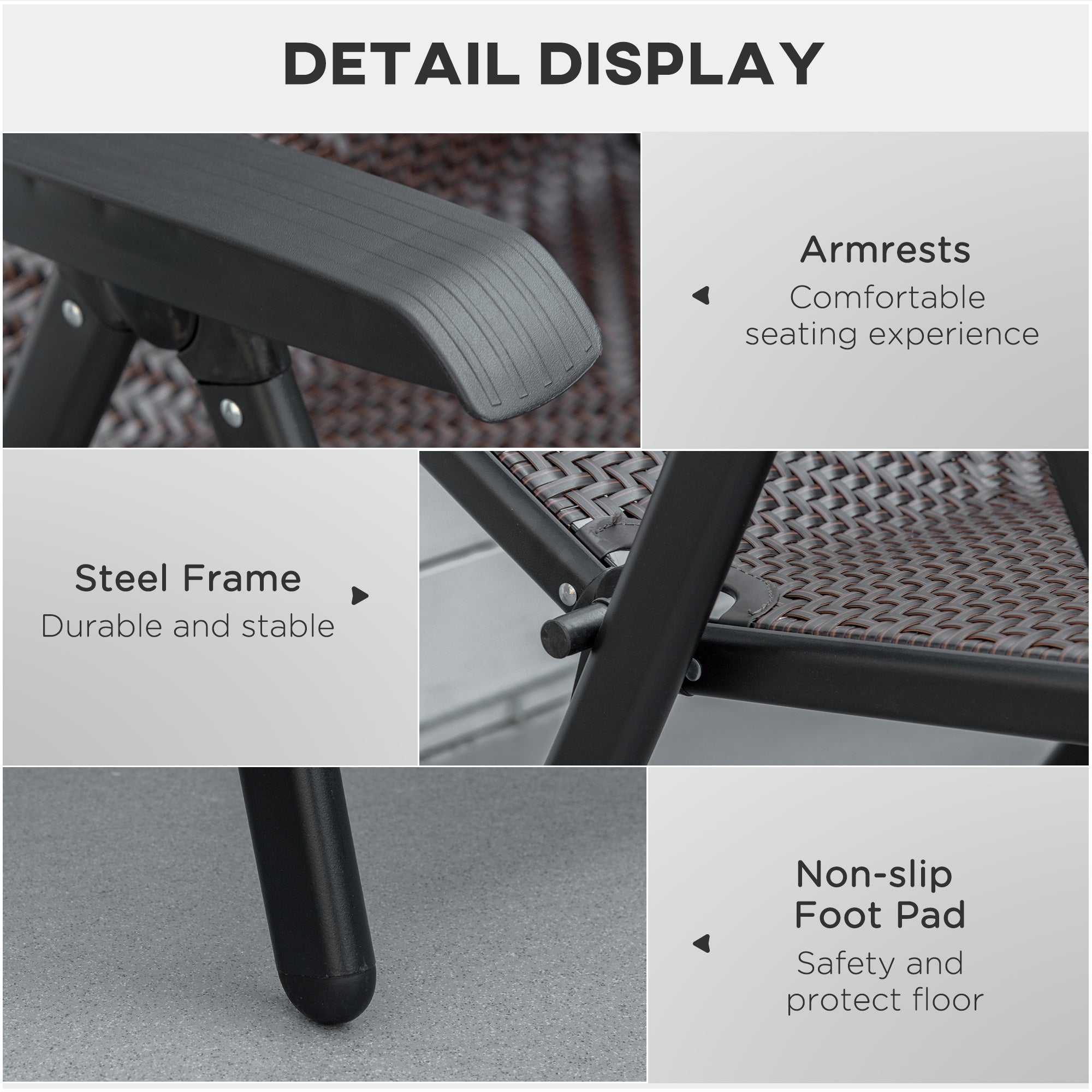 Set of Two Folding Garden Chairs, with Seven-Position Adjustable Backs - Brown