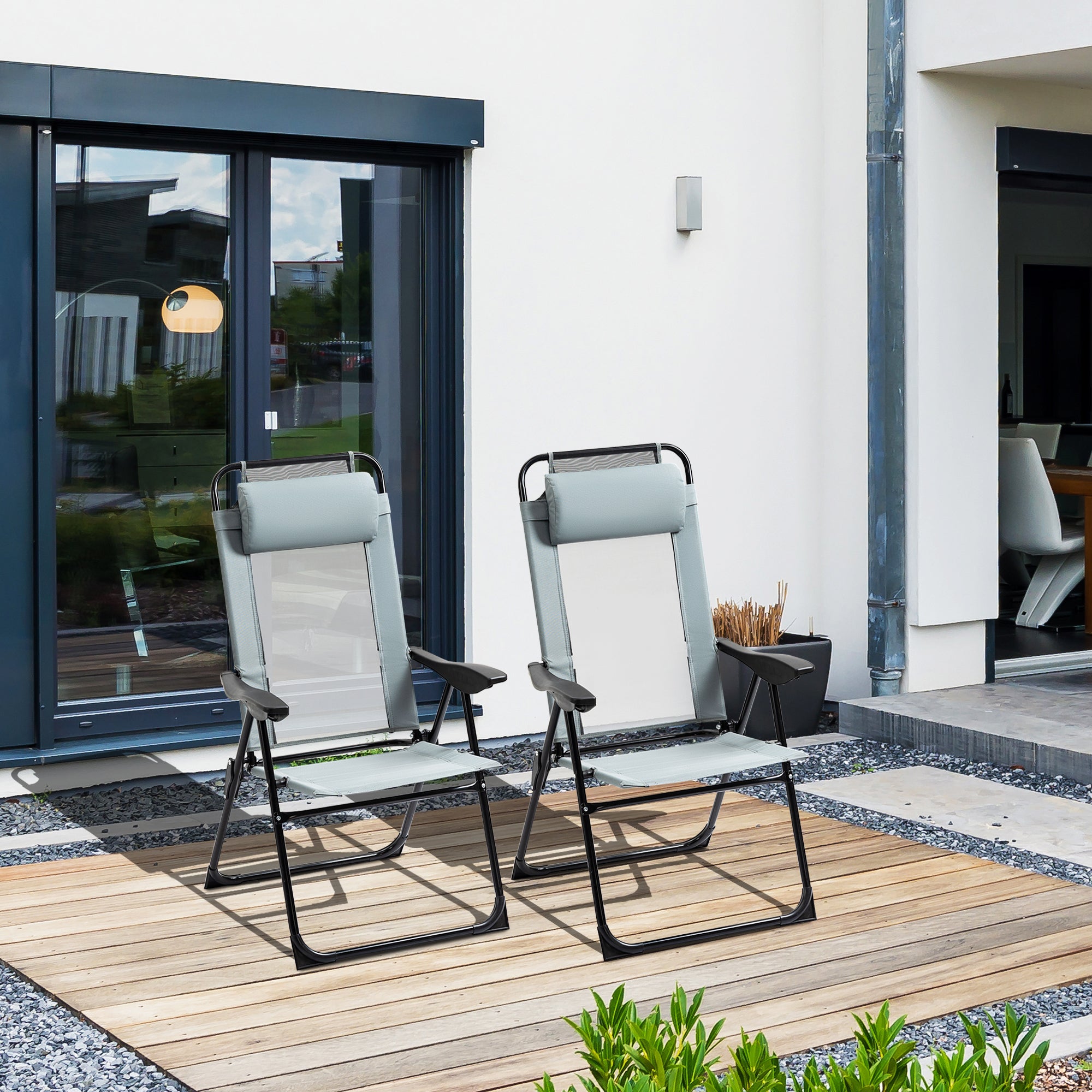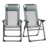 Set of 2 Portable Folding Recliner Outdoor Patio Adjustable Backrest, Grey