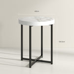Modern marble for your home - this set of 2 small tables. The table tops are made from MDF for durability with the two-tone design bringing a touch of elegance into your home. The frames are made from metal for strength, with 'X' shaped legs for plenty of support and balance. The flat table tops give plenty of room for what you need close by.