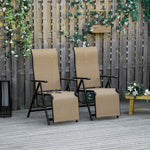 Outdoor Set of 2 Outdoor Sun Lounger 10-Position Adjustable Texteline Folding Reclining Chairs with Footrest for Patio Garden, Beige