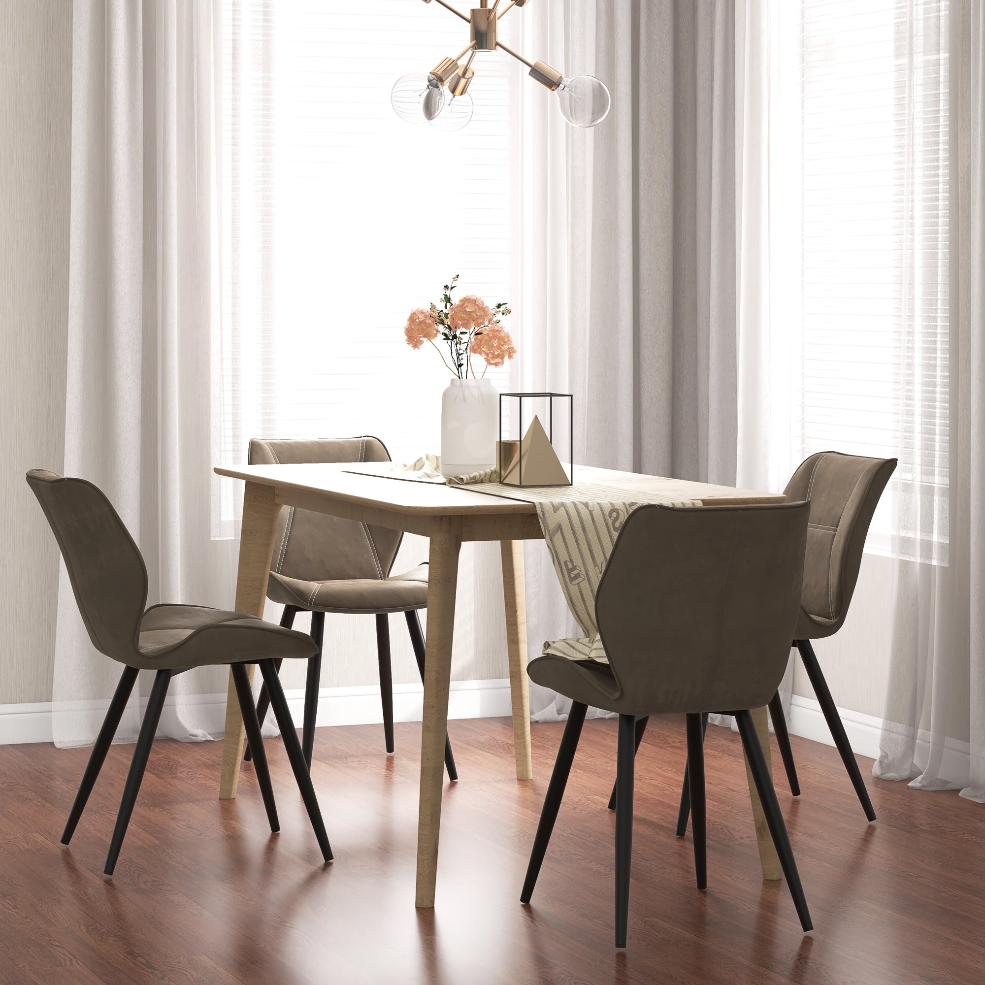 Set of 4 Contrast Stitched PU Leather Racing-Style Dining Chairs Accent Seat w/ Steel Legs Ergonomic Back Padding Home Living Room Brown