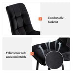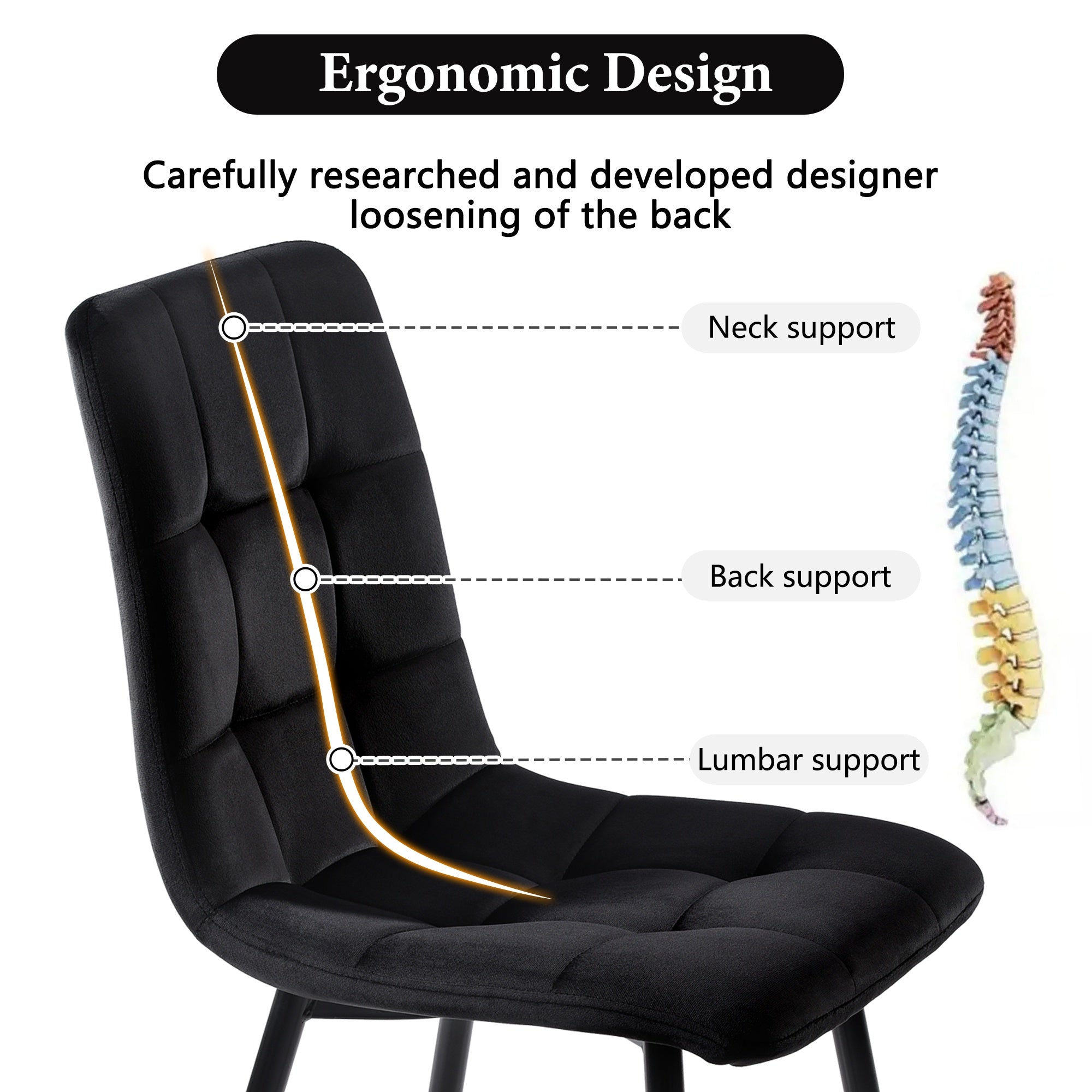 Set of 4 Ergonomic Velvet Dining Chairs with Upholstered Seat and Metal Frame, Black