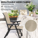 An essential set for garden and outdoor spaces - these four outdoor chairs. With 63 cm high backs and armrests for support, the breathable mesh fabric seats hold you comfortably. Using powder coated steel frames for a strong core, these chairs are foldable - carry around and store whenever you want