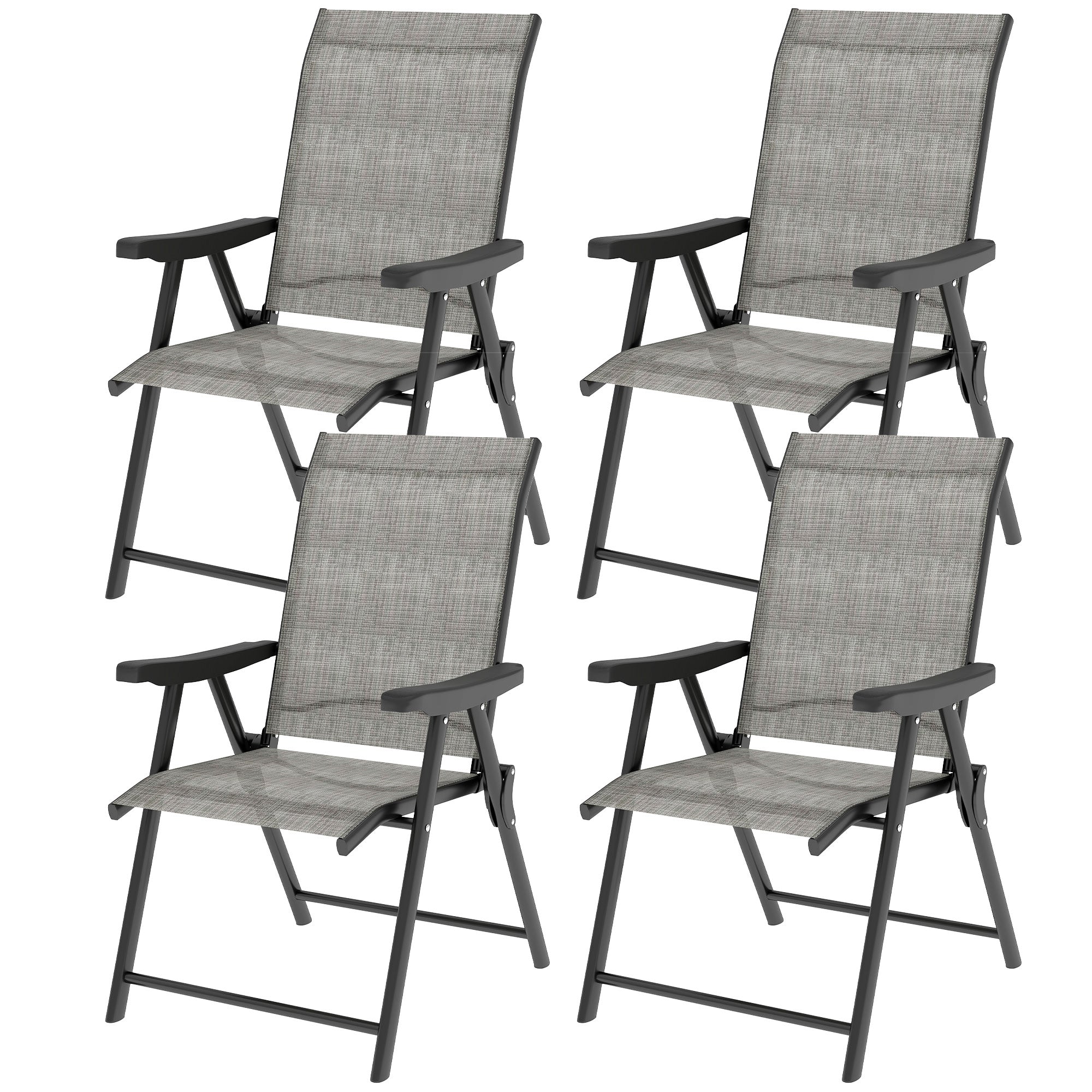 Set of Four Folding Outdoor Chairs - Black/Grey