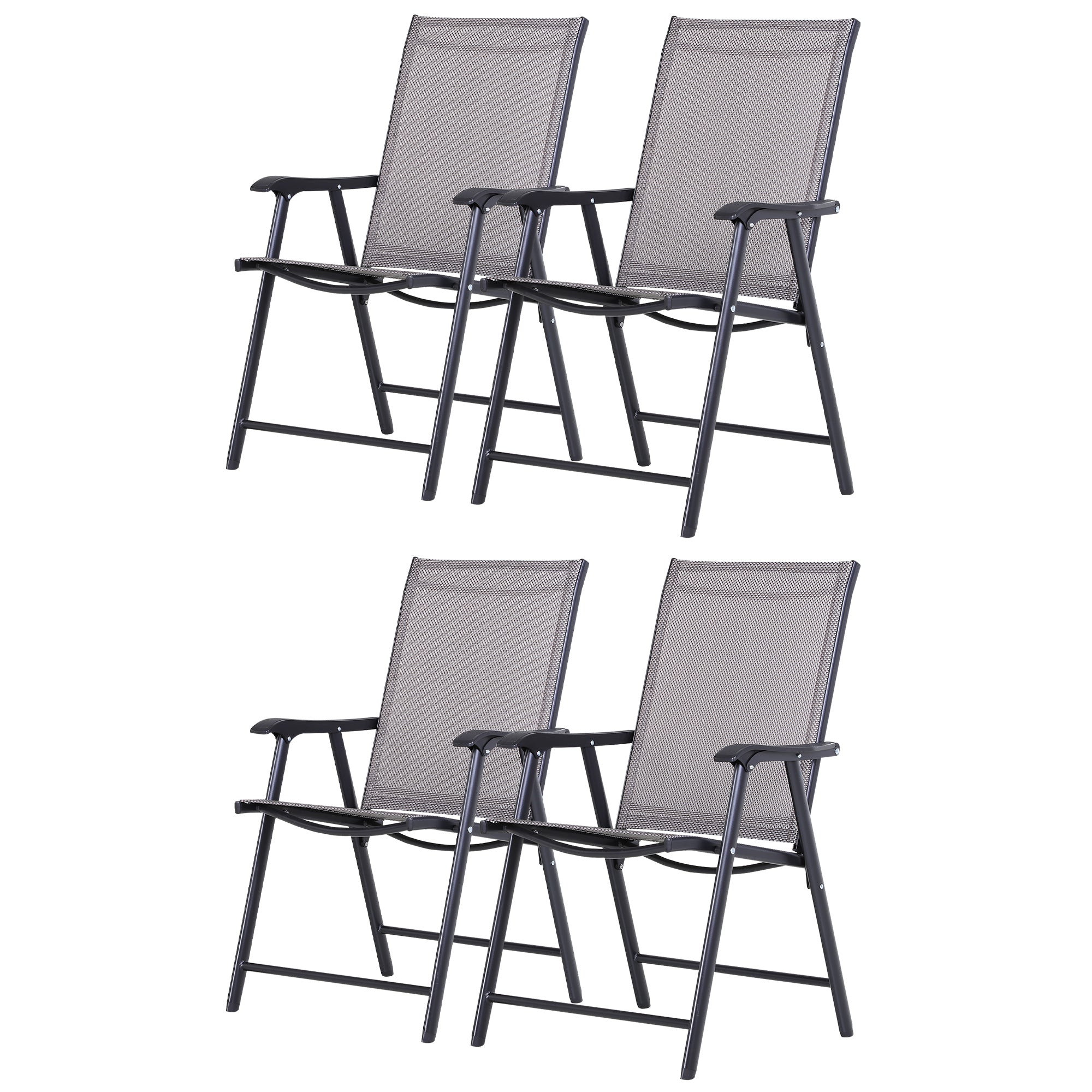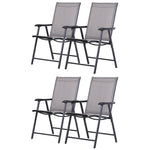 Set of 4 Folding Garden Chairs, Metal Frame Garden Chairs Outdoor Patio Park Dining Seat with Breathable Mesh Seat, Grey