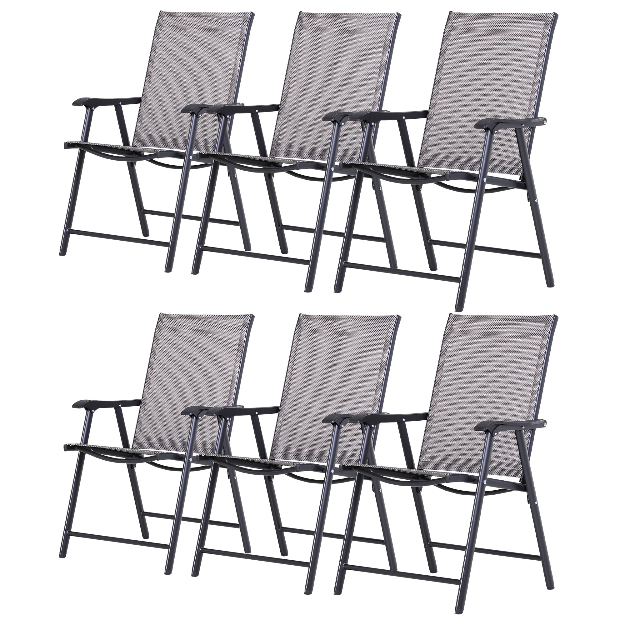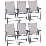 Set of 6 Folding Garden Chairs, Metal Frame Garden Chairs Outdoor Patio Park Dining Seat with Breathable Mesh Seat, Grey