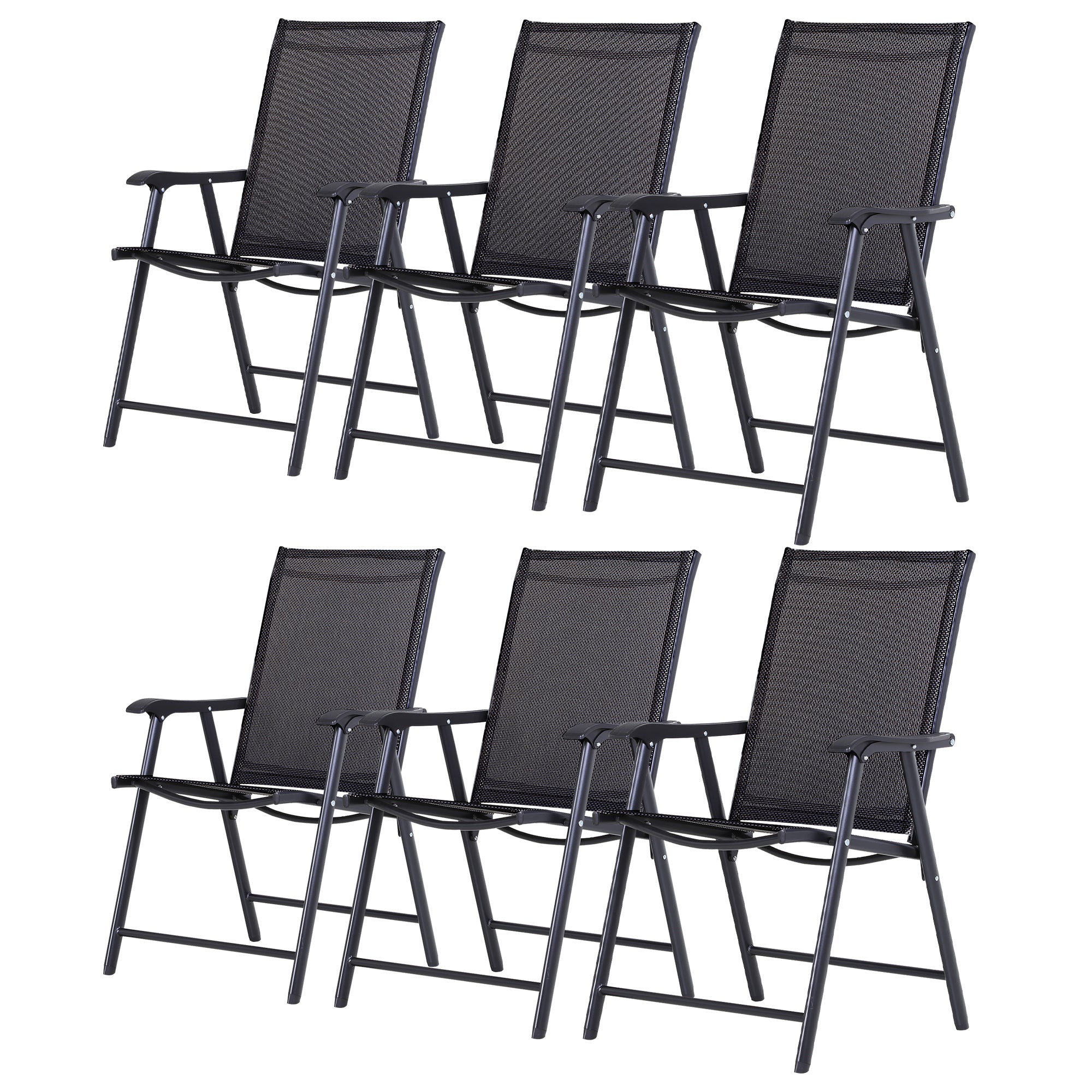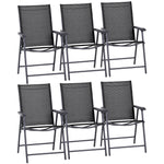Set of 6 Folding Garden Chairs, Metal Frame Garden Chairs Outdoor Patio Park Dining Seat with Breathable Mesh Seat, Black