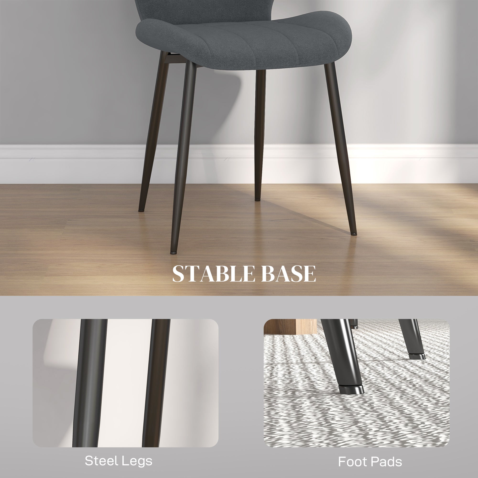 Blending a relaxed design with plenty of comfort, comes this set of four dining chairs. A relaxed tub shape, with no arms, 5cm thick padding and soft flannel upholstery make each accent chair a comfortable piece you'll love using. Look to the steel frames for strong support; these dining room chairs are finished with foot pads which gently protect your floor from marks.