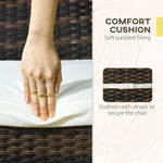 A must for your garden: these chairs. Powder coated metal frames for a strong core, wrapped in rattan for style. High backs for support. Complete with a cushion for comfort.
