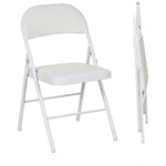 Fold down, fold up. This set of two folding chairs from provide instant seating for whatever the task is. Steel frames ensure a strong core, so you'll be supported with every use. Padding on the seats keep you comfortable, making them suitable for a variety of tasks. The foldable design is great for smaller spots - simply take out and use whenever needed.
