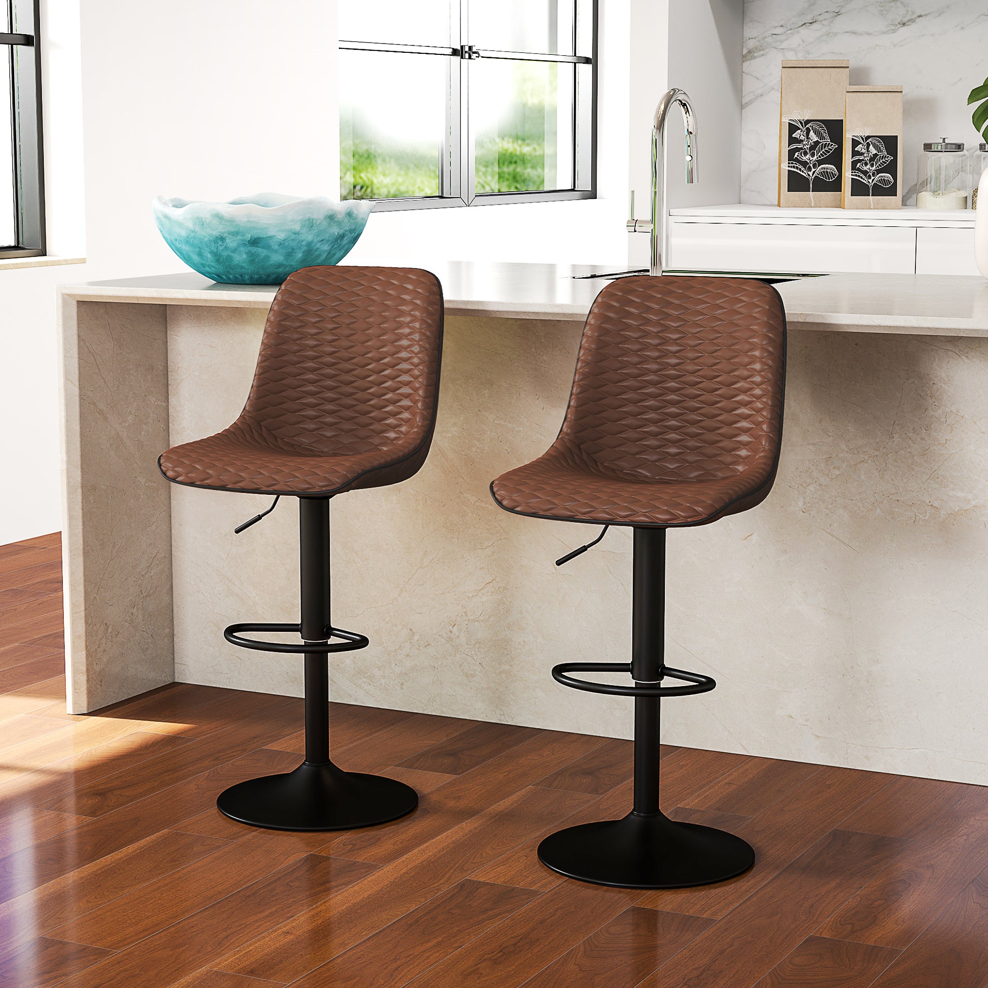 A stylish look for your kitchen and dining spots with these faux leather bar stools. The backs and seats feature a diamond tufted pattern for a touch of style. Sponge padded bar stool for comfort, upholstered in faux leather for a smooth and stylish touch. The metal base on each swivel bar stool offers strong support, complete with a lower footrest.