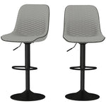 Set of Two Faux Leather Bar Stools - Grey