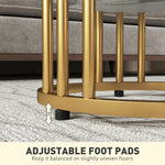 A beautiful addition to the everyday with this two-piece coffee table set. Both tables come in a two-tier design, offering plenty of holding space. This marble-effect tops, paired with the gold-tone legs mean an elegant look. With a steel frame for a strong core, the living room tables are complete with adjustable feet for balance.