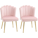 Shell Dining Chairs Set of 2, Upholstered Kitchen Chairs with Gold Metal Legs and Backrest, Velvet Fabric Lounge Leisure Chairs for Living Room, Reception Room, Pink