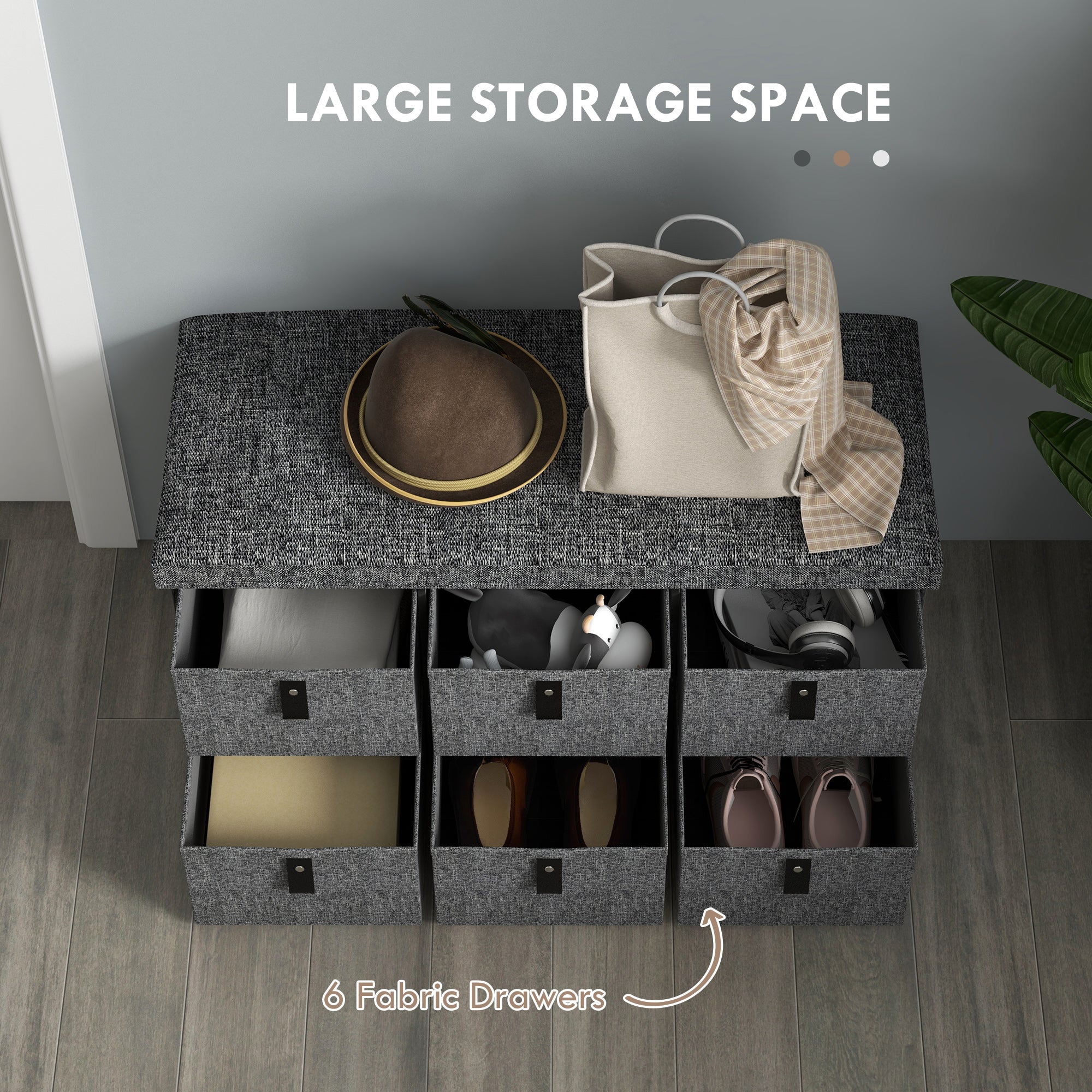 Six-Drawer Shoe Storage Bench, with Padded Top Seat - Dark Grey