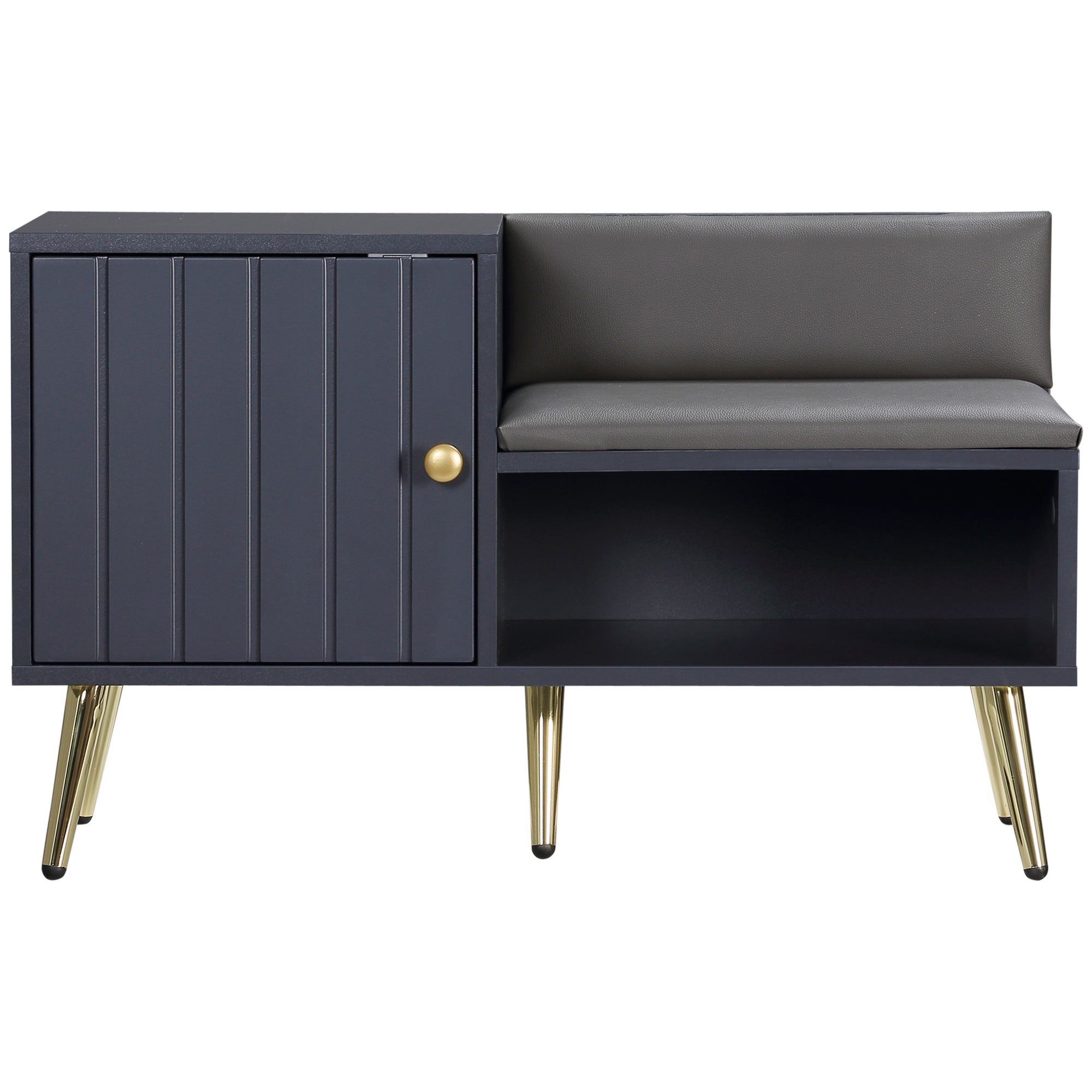 Organise footwear with this hallway bench. The multi-storage design comes with a compartment, side cupboard and padded seat: room for up to four shoe pairs, keeping smaller items, whilst giving you a comfortable place to sit when taking shoes off/putting them on. Hallway storage unit complete with metal legs for strong support. Maximum shoe size: UK 8.5.