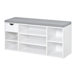Shoe Bench with Seat Cushion Shoe Storage Cabinet with 7 Compartments Drawer Adjustable Shelves for Entryway Hallway Living Room White and Grey