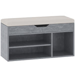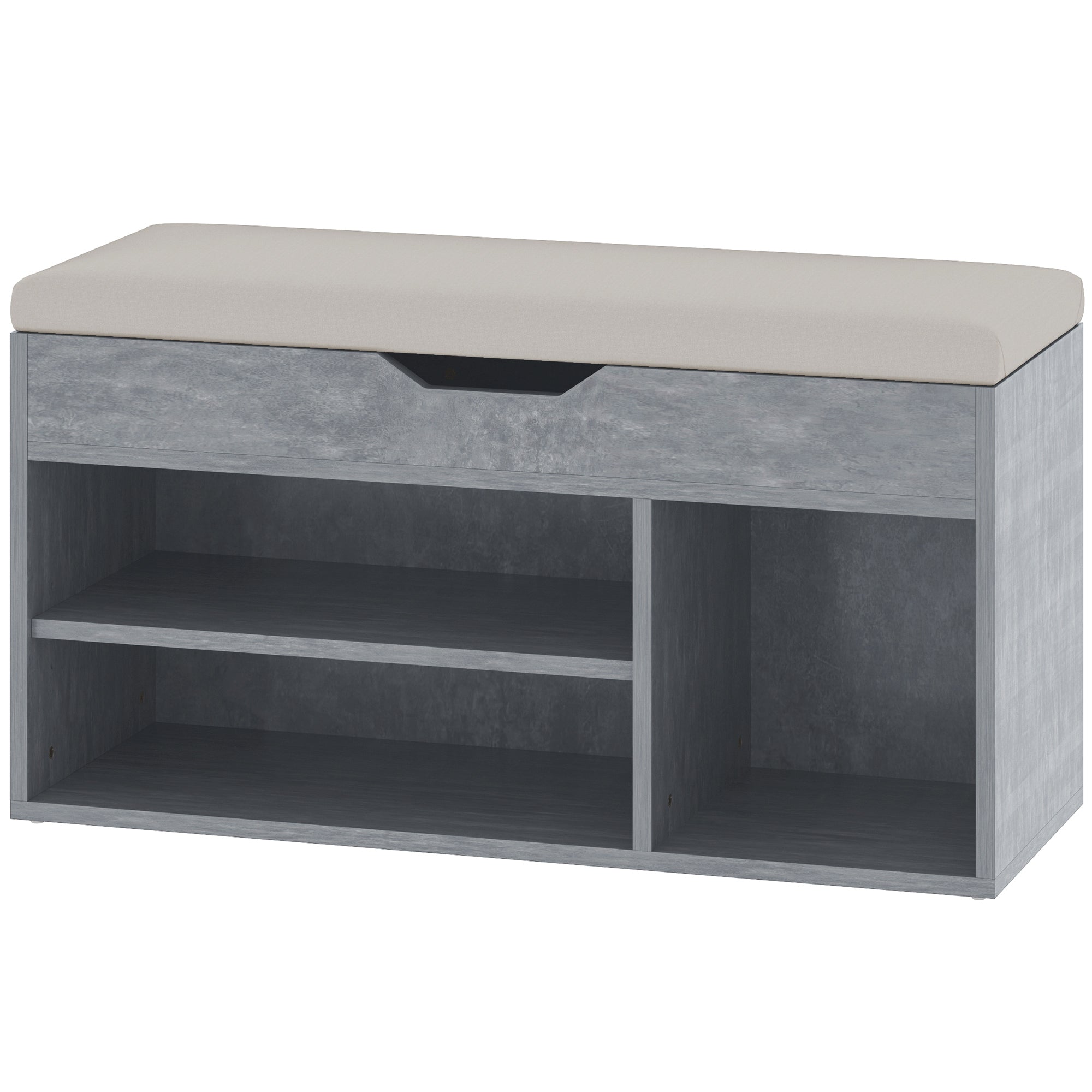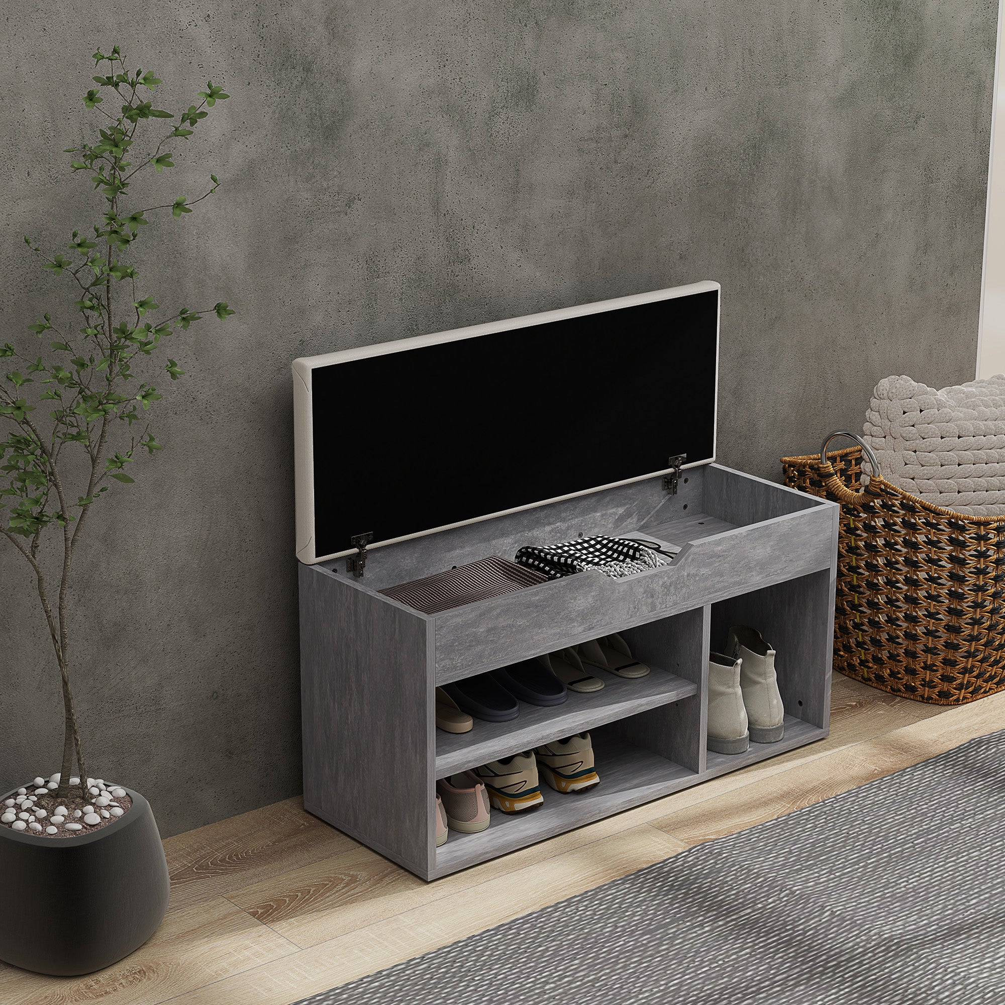 Shoes Cabinet Bench Hidden Storage Padded Seat Organiser Footwear Rack Hallway Grey Wood Grain