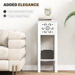Bring the beauty of floral into the everyday, with these two side tables. In white, with a floral shaped cut-out on the top, both small side tables are elegant. They features a drawer, bottom shelf and flat top to hold plenty close to you. Complete with anti-tipping straps to safely fix to a wall.