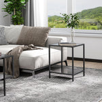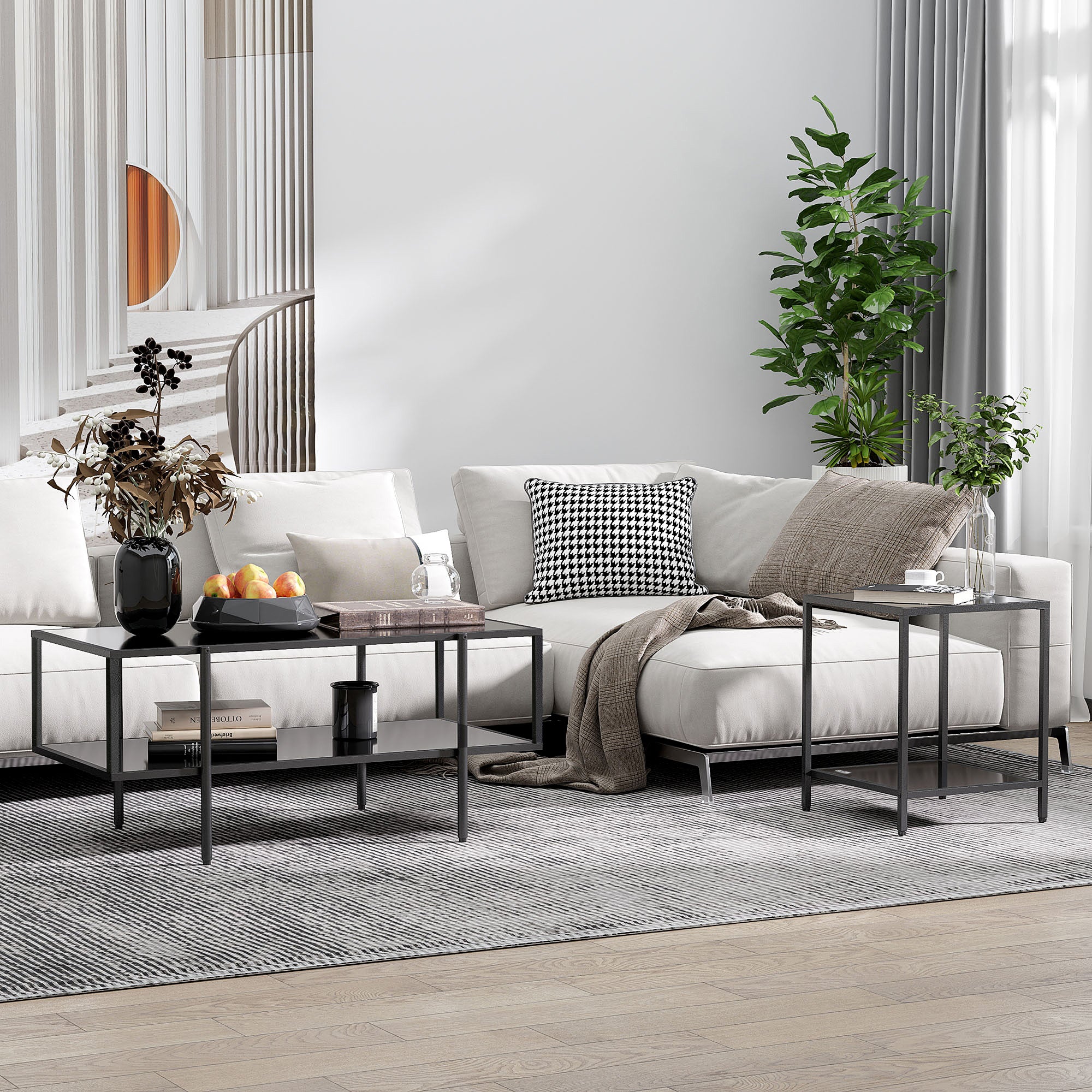 Side Table with Tempered Glass Top, End Table with 2-Tier Storage, Classic Accent Table with Steel Frame, Black