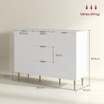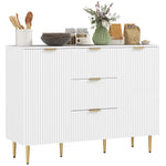 Sideboard Buffet Cabinet, Modern Kitchen Storage Cabinet with 3 Drawers and Adjustable Shelves, Living Room Cabinet with Metal Legs for Hallway, White