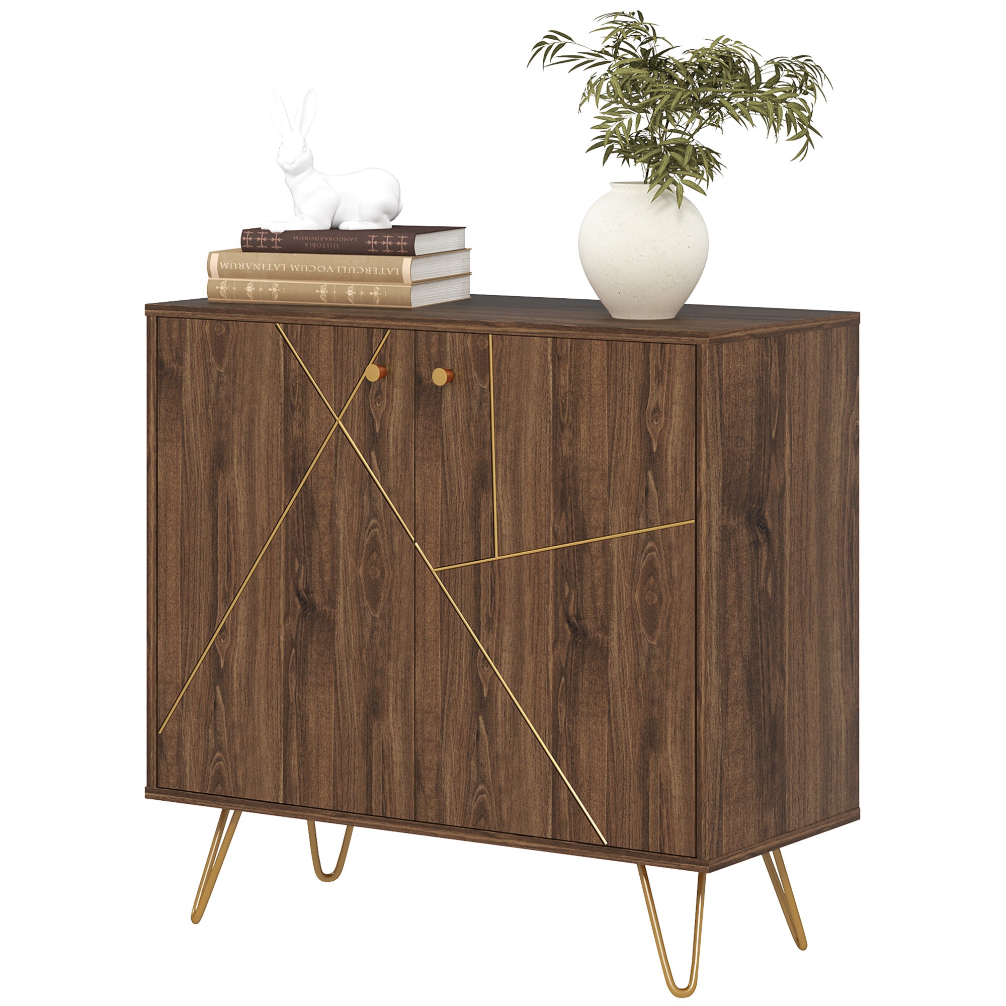 Sideboard Storage Cabinet with Golden Lines, Modern Luxury Living Room Cabinet with Adjustable Shelf, Steel Harpin Legs, Brown