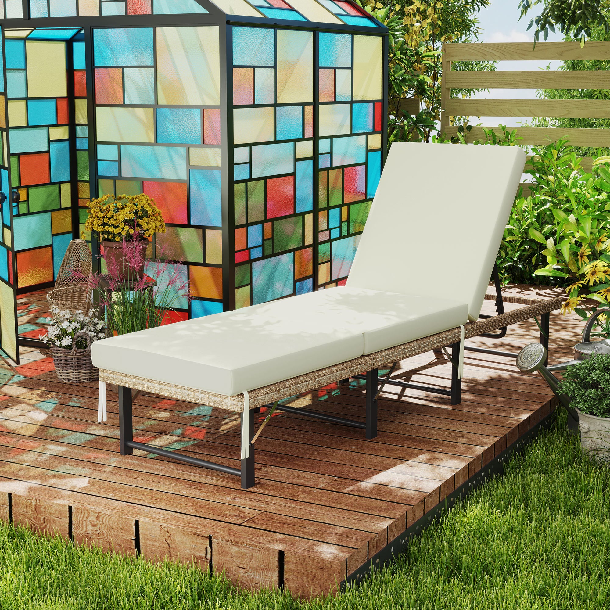 Relax in style when the sun comes out, with this sun lounger with cushion. A powder-coated steel frame for a strong core, wrapped in plastic wicker for a tough and stylish shell. The padded sun lounger is fitted with a long cushioned top to keep you comfortable; set the back between six positions - find the angle you want. Plus, this foldable sun lounger is easy to carry and store.