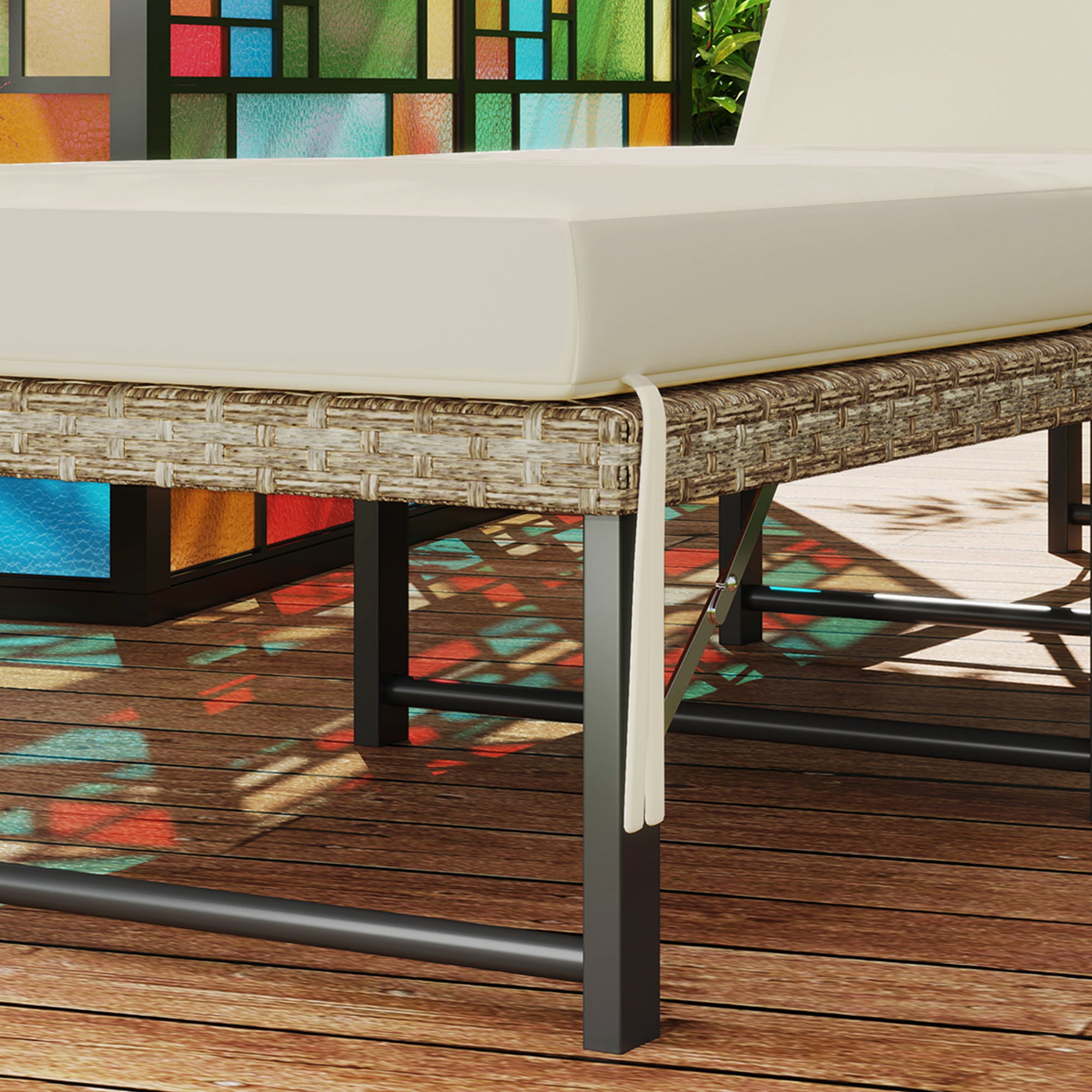 Single Folding Rattan Sun Lounger, with Cushion - Grey