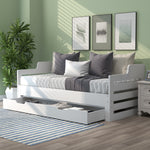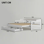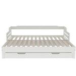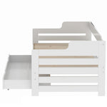 Transform your living space with this versatile daybed, featuring a pull-out trundle and storage drawer, perfect for both the living room and bedroom. Crafted from solid New Zealand pine wood and MDF, this bed is finished in a serene white, offering a contemporary yet timeless appeal. The extendable design accommodates a single to king-size mattress, making it ideal for overnight guests, while the under-bed storage drawer provides ample space for blankets and bedding. With a weight capacity of 240 kg and easy assembly, this bed combines functionality with style, ensuring it meets the highest safety standards for peace of mind.