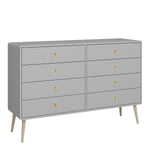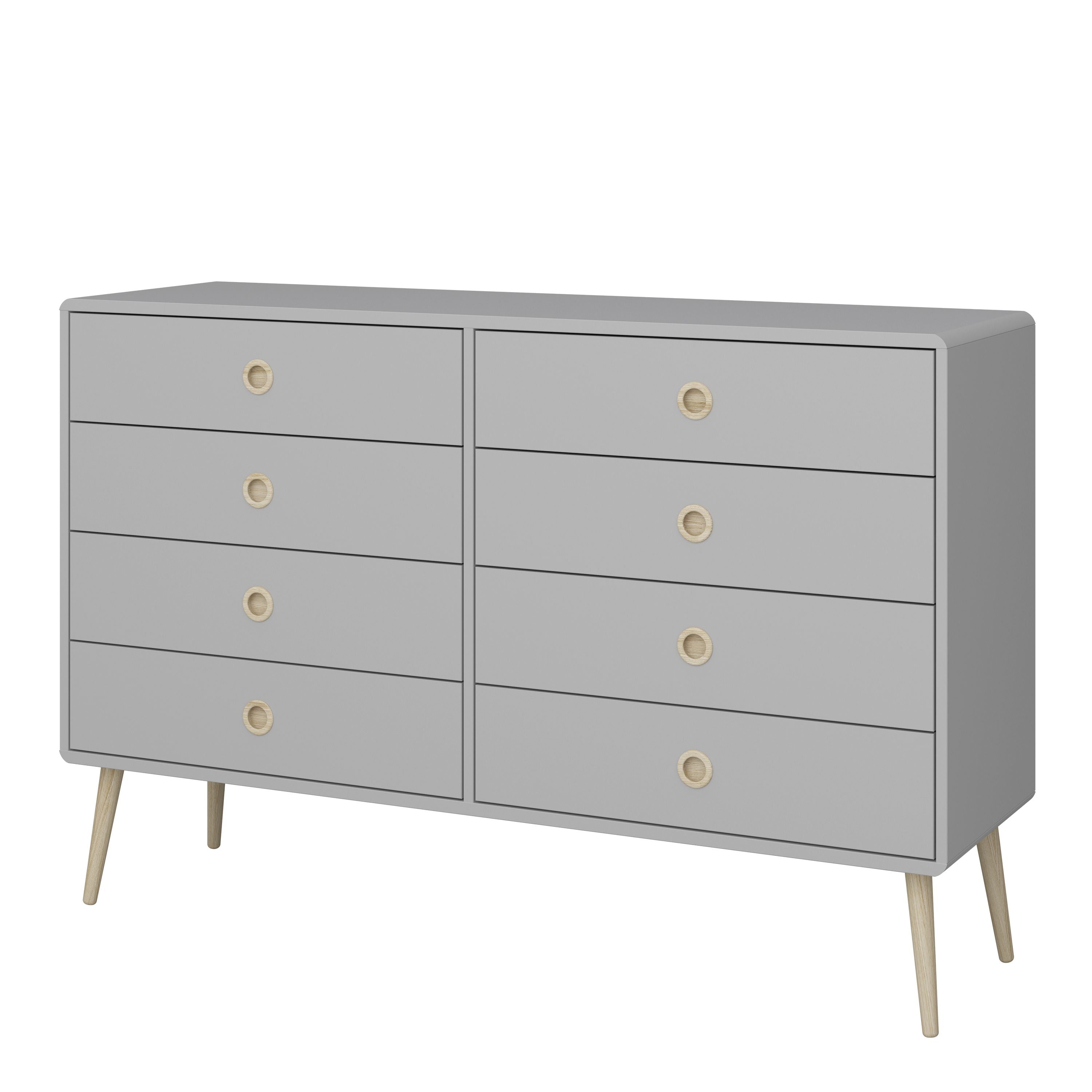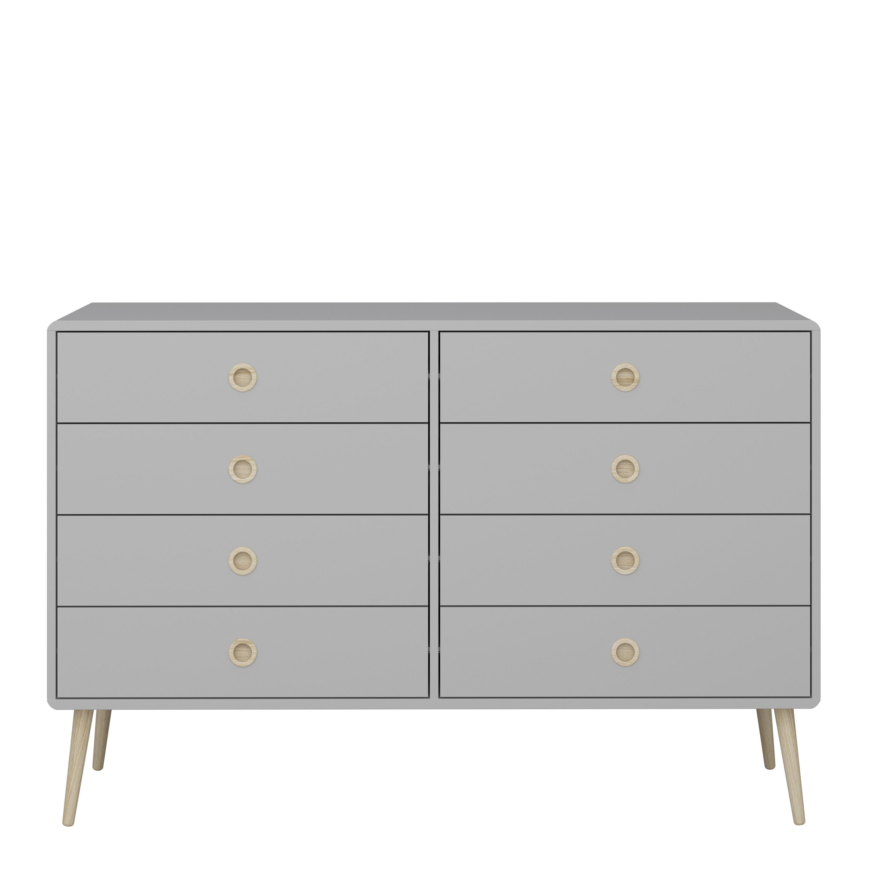 Finished in grey with pine stained handles and tapered legs, the Softline 4+4 wide chest brings mid-century style to any home. The clean, streamlined appeal of this chest suits almost any decor, and will look great whether you opt for it as a standalone piece, or choose other items from the range to complete the look.