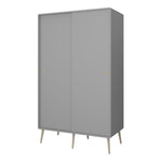 Finished in grey with pine stained handles and tapered legs, the Softline 2 door sliding wardrobe brings mid-century style to any home. The clean, streamlined appeal of this wardrobe suits almost any decor, and will look great whether you opt for it as a standalone piece, or choose other items from the range to complete the look.