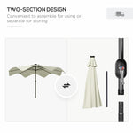 Solar Patio Umbrella with LED and Tilt, Outdoor Market Table Umbrella Parasol with Crank, 3 x 3 (m), Cream White