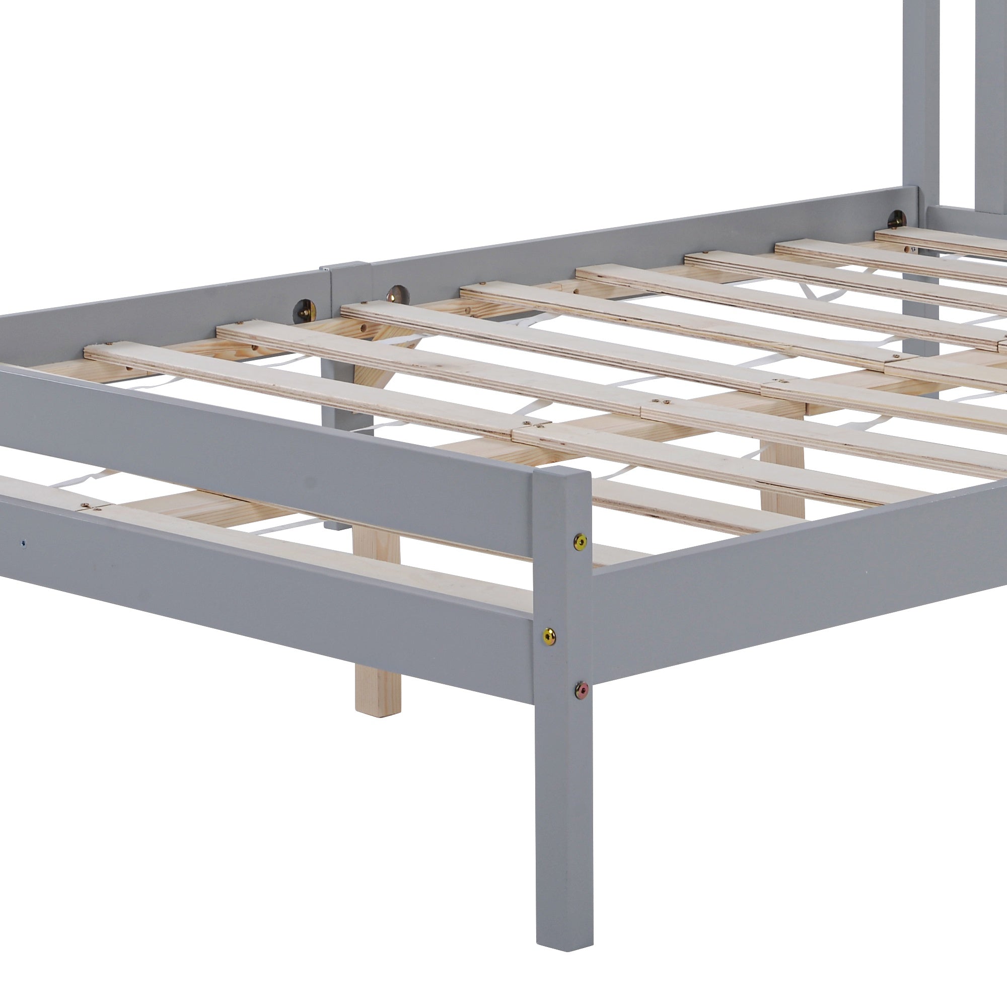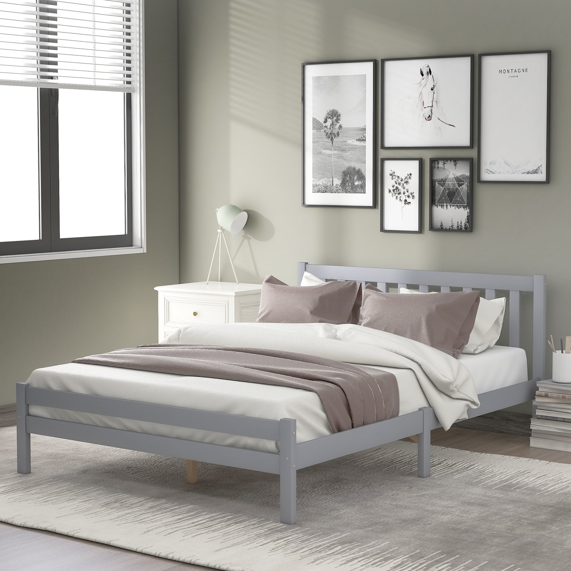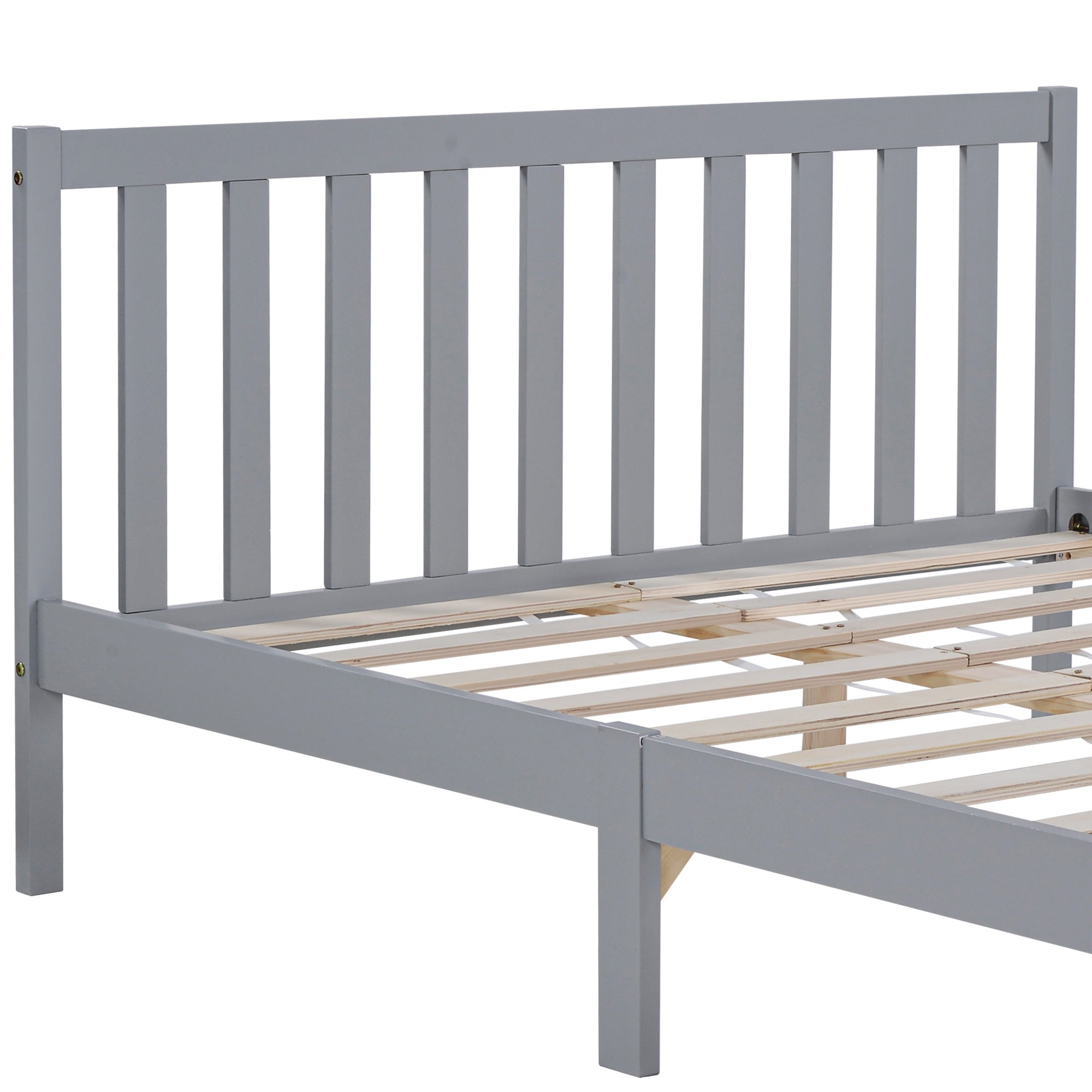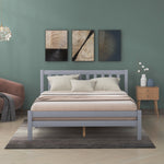 Solid Wooden Double Bed Frame, 4ft6 with Headboard and Footboard, Bedroom Furniture, No Box Spring Required, 196x140x77 cm, Grey
