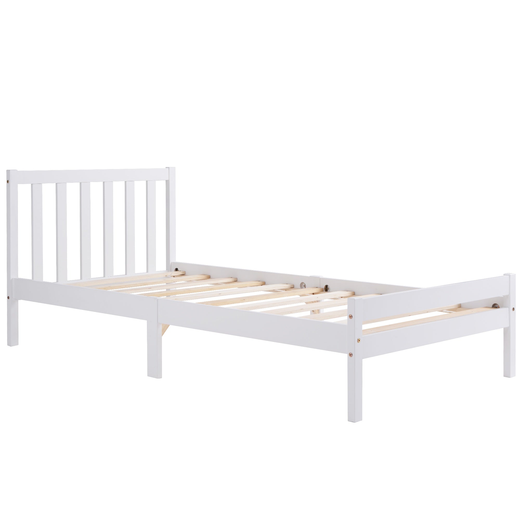 Solid Wooden Single Bed Frame 3ft with Headboard and Footboard, No Box Spring Required, Easy Assembly, 196x94x77 cm, White