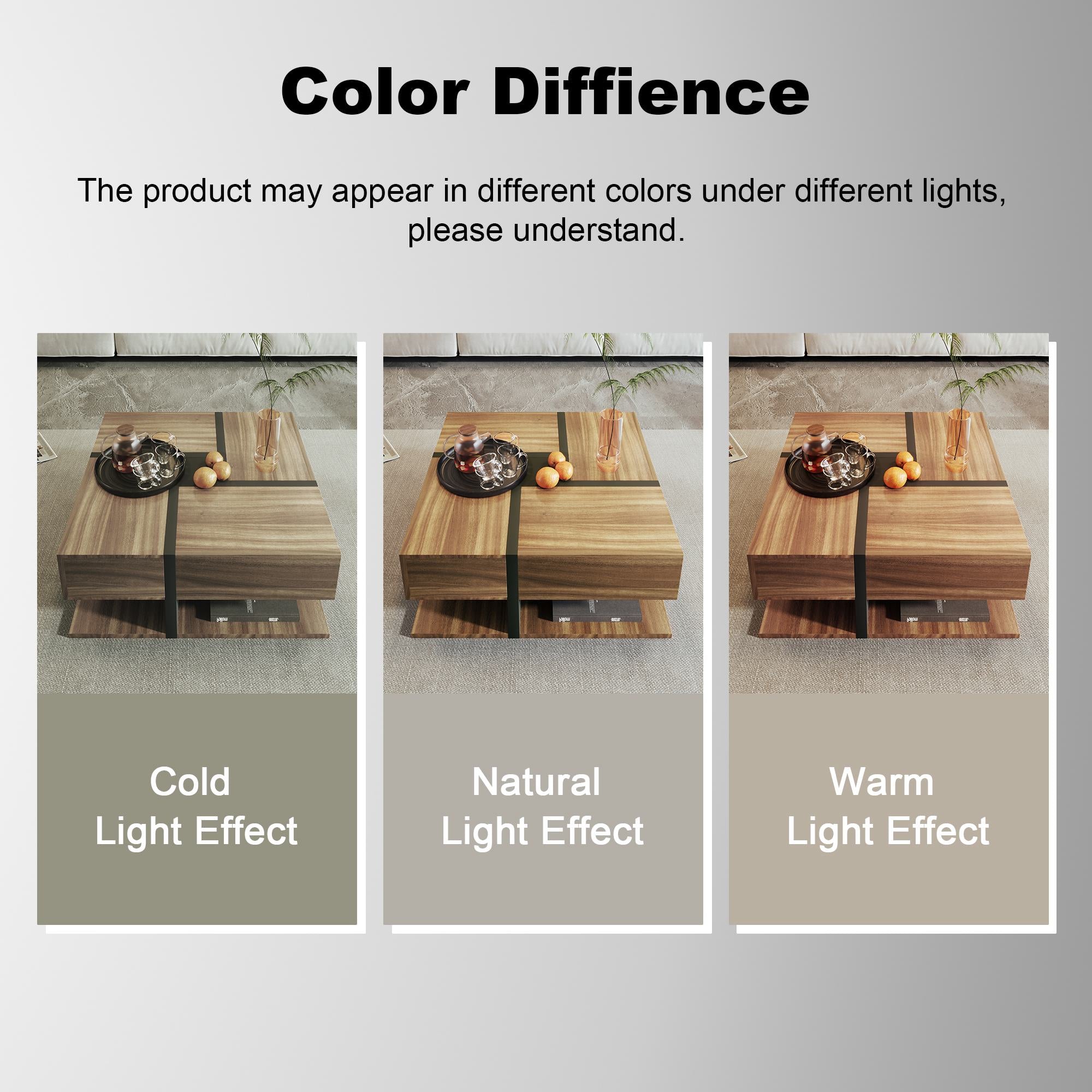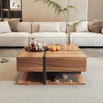 Square Coffee Table with 4 Drawers, Unique Pattern, Bottom Storage, 78L x 78W x 36H cm, Natural