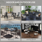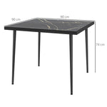 Square Garden Table, Outdoor Dining Table for 4 with Marble Effect Tempered Glass Top and Steel Frame for Patio, Black