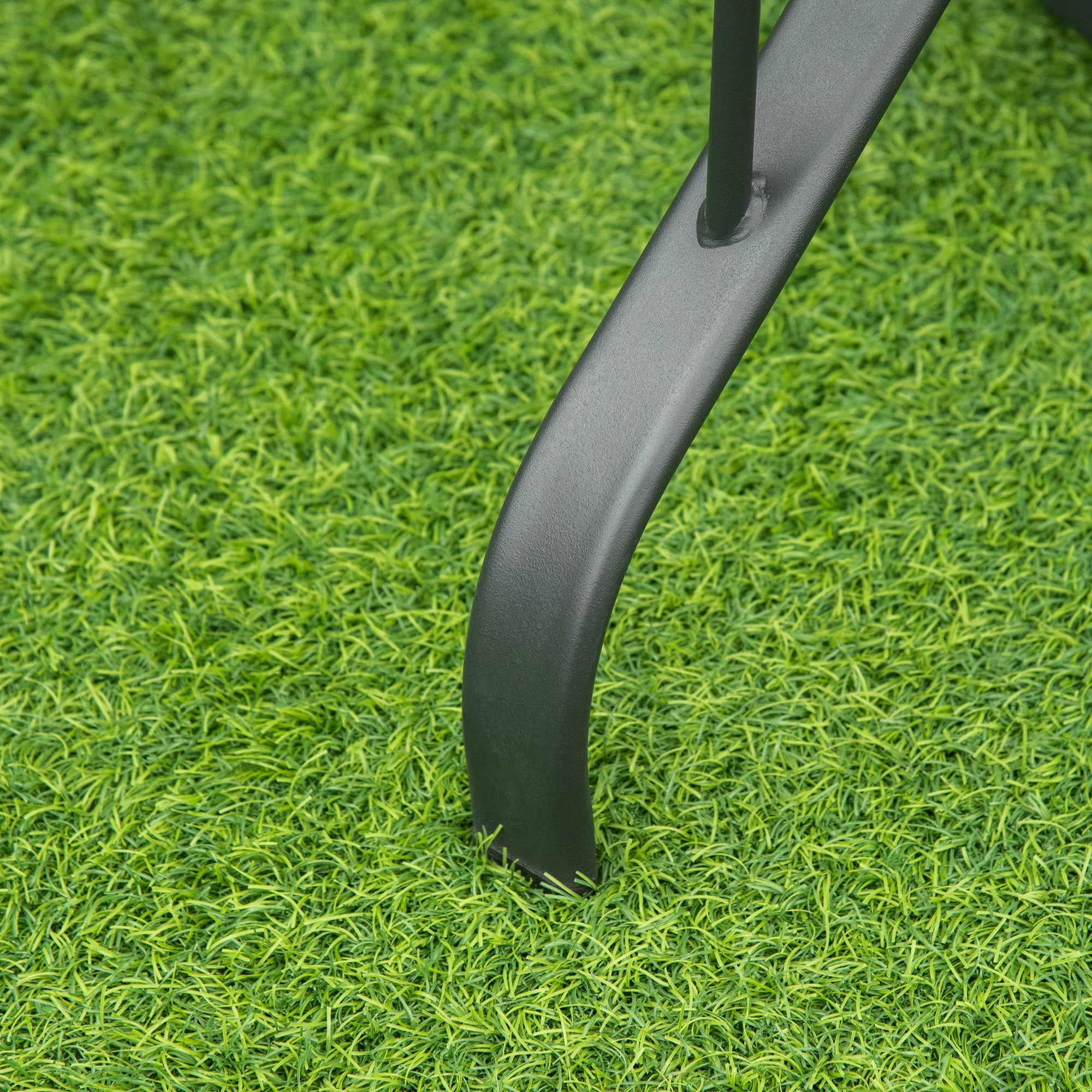 Create a simple yet inviting dining space outdoors with this 106.5L x 106.5cm garden table. The powder coated steel frame means a strong structure, fitted with a sleek glass table top. This small dining table features a 40mm middle hole to hold a parasol umbrella in place: keep safely shaded in the sun. Complete with anti-slip feet to gently protect your floor.