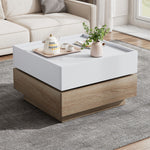 Square Rotating Coffee Table with 2 Drawers and Swivel Top, 2-Tier Centre Table with Storage, 60L x 60W x 38H cm, White+Oak