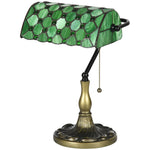 Stained Glass Table Lamp, Vintage Lamp with Green Handmade Shade, Metal Base, Antique Bedside Lamp for Bedroom Living Room Home Decoration