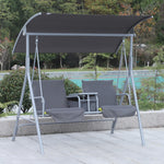 Steel Frame 2-Seater Swing Chair w/ Table Grey