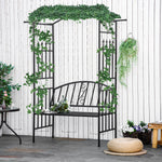 Steel Frame Outdoor Garden Arch w/ 2-Seater Bench Black