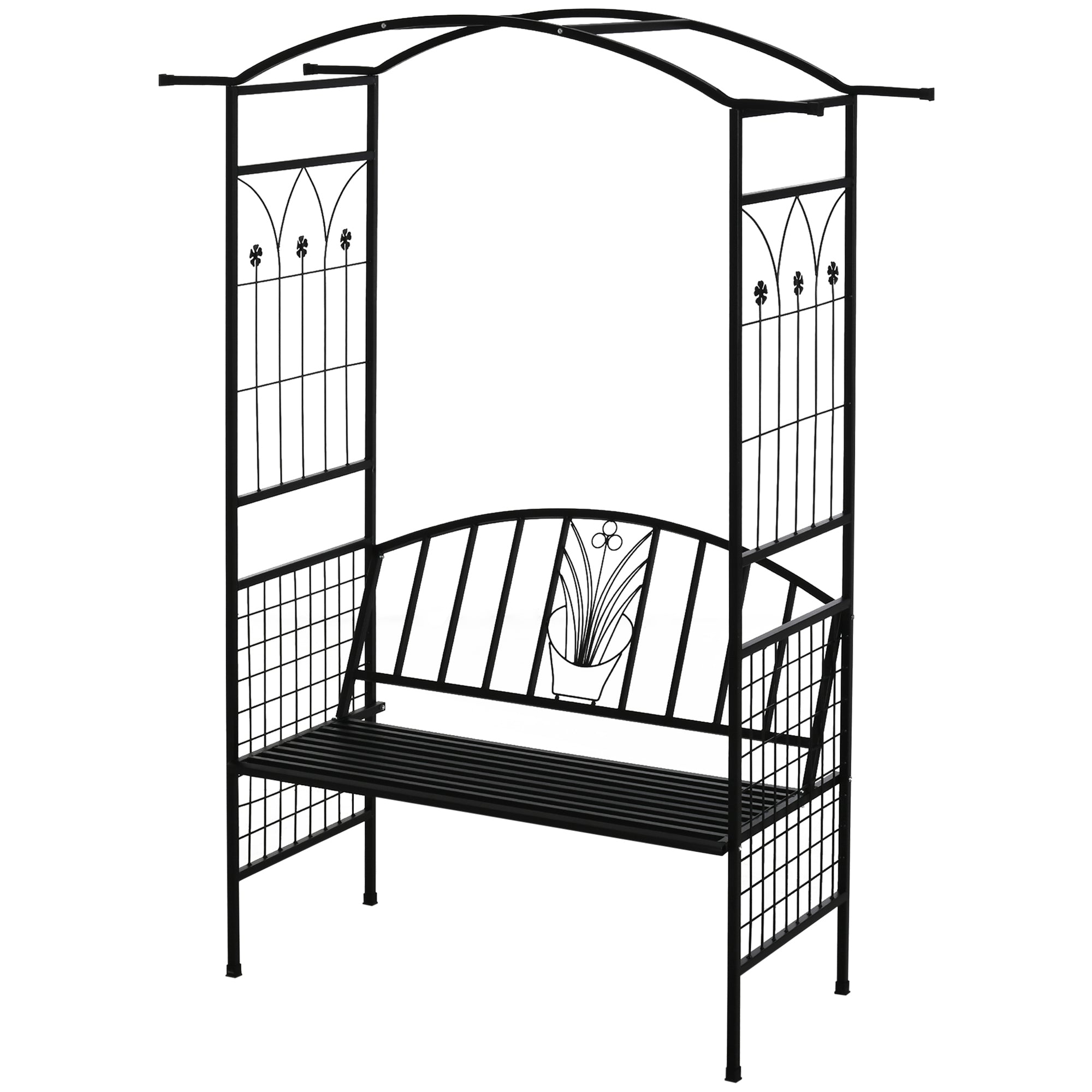 Steel Frame Outdoor Garden Arch w/ 2-Seater Bench Flower Climber Black