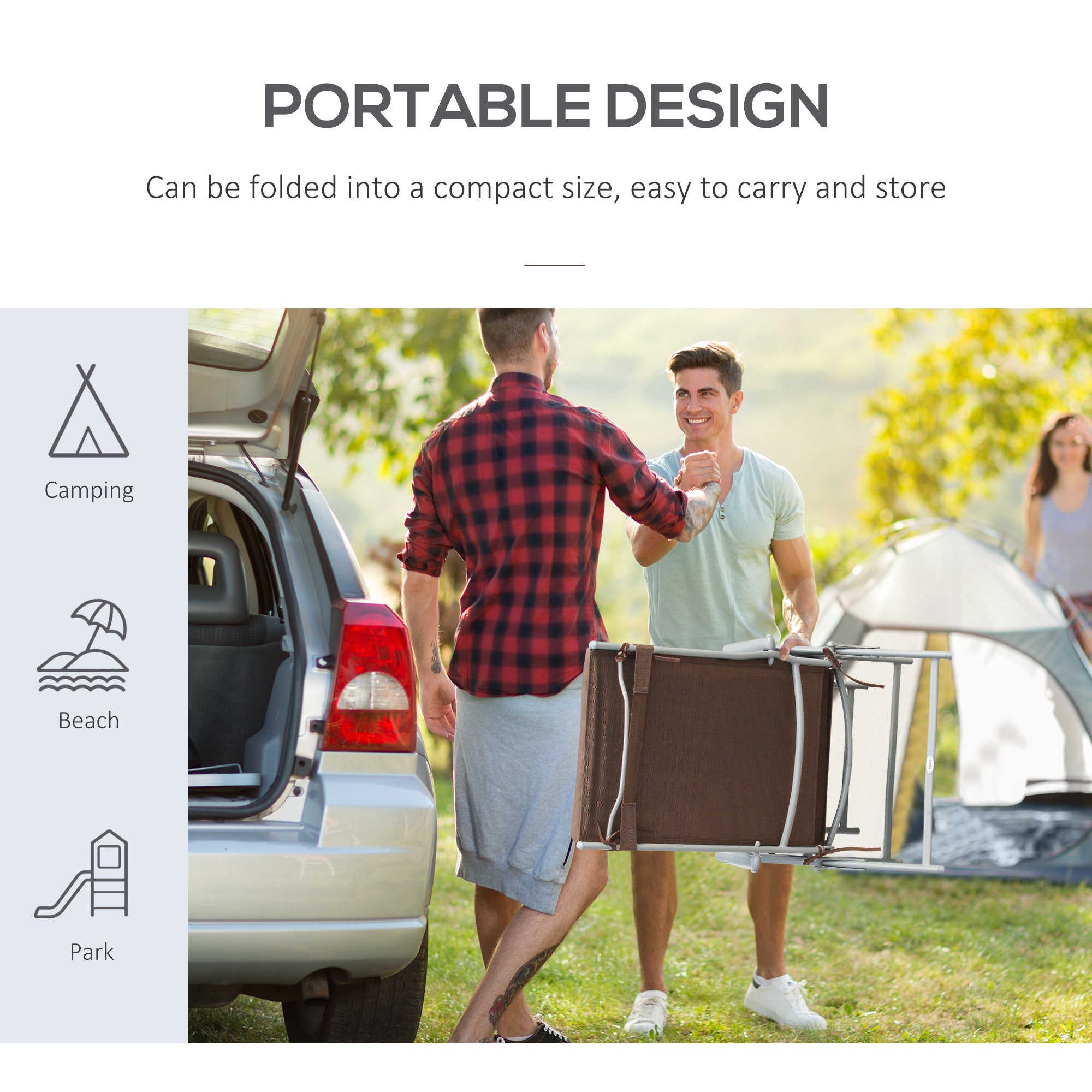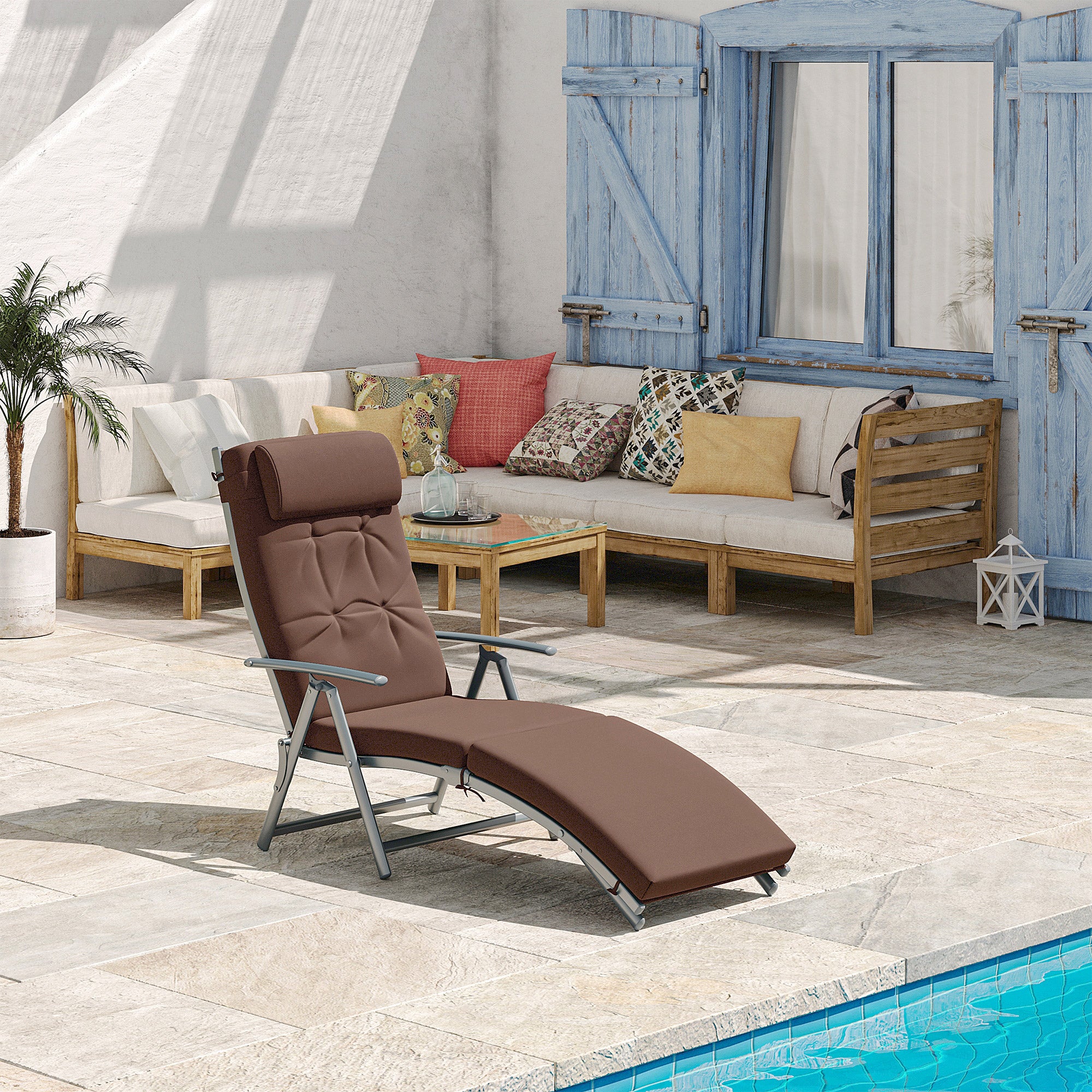 Sun Lounger Steel Frame Outdoor Folding Chaise Texteline Lounge Chair Recliner with Headrest & 7 Levels Adjustable Backrest, Brown