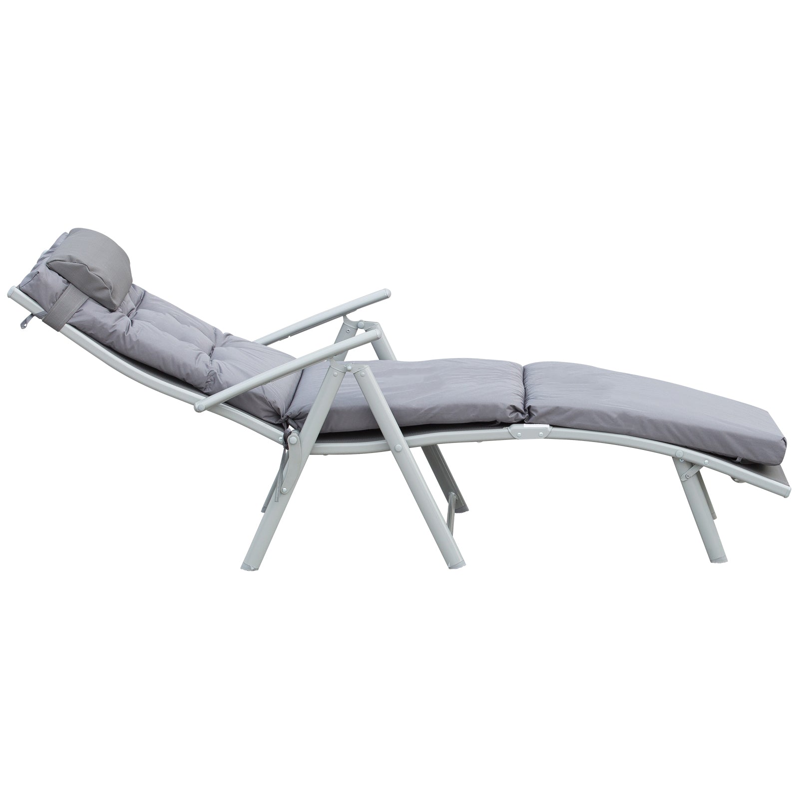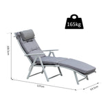 Steel Frame Outdoor Garden Padded Sun Lounger w/ Pillow Grey