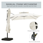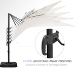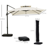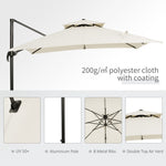 Keep yourself protected whilst enjoying the sun with this large cantilever parasol. Made from aluminium, the strong central pole is durable for years of use outdoors. Connected to the frame via eight metal ribs for extra strength, the water-resistant polyester canopy provides protection from direct sunlight and heat, with a 2-tier top to allow air to circulate. Using a crank mechanism for easy opening and closing, the canopy can rotate 360° to keep you covered all-day long.