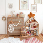 Bedroom drawers, with a subtle difference. This dresser comes with four drawers - each fitted with a middle rattan weave panel; this subtly brings a touch of the outside into your indoor styling. Made from particle board for a strong structure, finished in a wood-effect look natural beauty. The four-legged base provides plenty of support, and this drawer chest comes complete with anti-tipping straps to secure a wall safely.