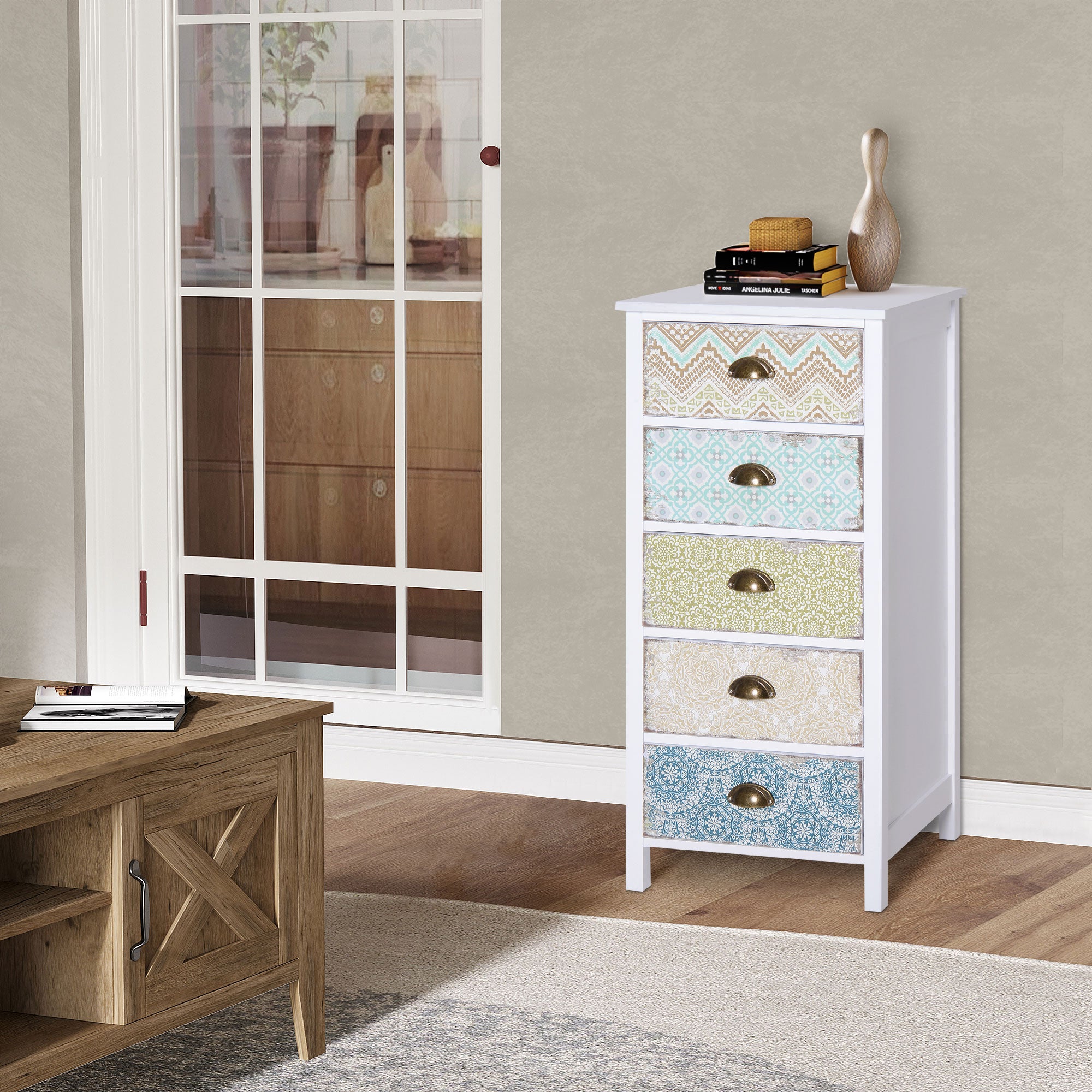 Chest of 5 Drawers Bedside Cabinet Side Storage Chest Entryway Living Room Bedroom Furniture Organizer Unit
