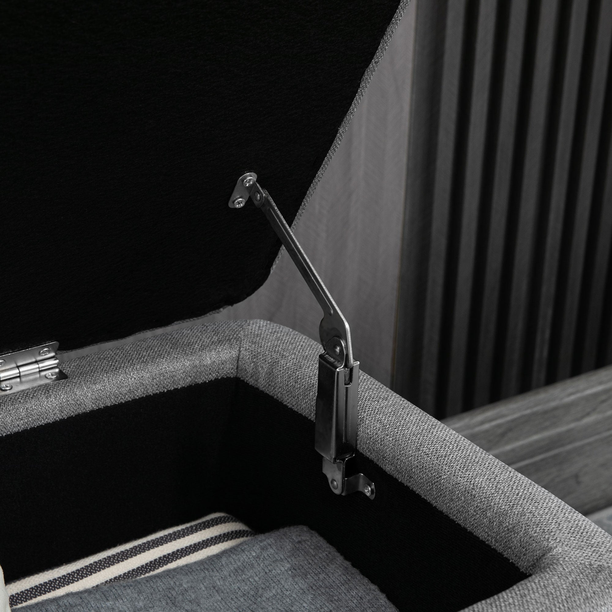 Storage Ottoman with Flip Top, Rectangular Upholstered Bench, Linen Fabric Footstool with Steel Legs for Living Room, Bedroom, Grey