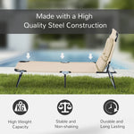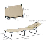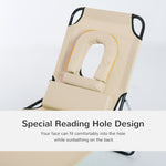 Outdoor Foldable Sun Lounger, 4 Level Adjustable Backrest Reclining Sun Lounger Chair with Pillow and Reading Hole, Beige