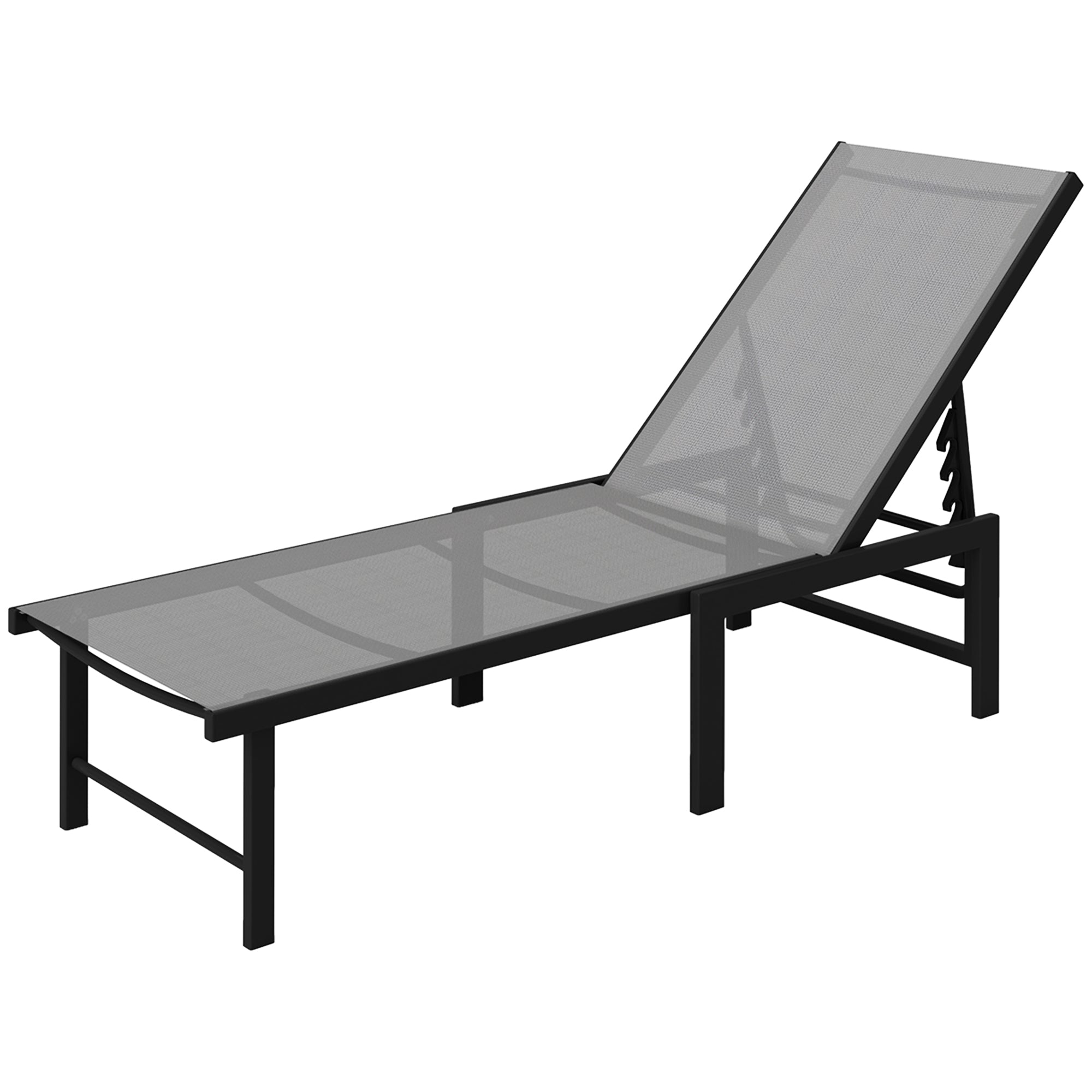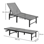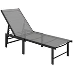 Sun Lounger for Garden, 5-Level Adjustable Reclining Sun Lounger Chair, Flat Garden Lounger Sunbed with Texteline Seat, Steel Frame for Patio, Beach, Grey